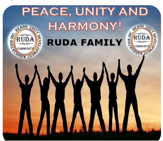 Welcome to Reang Unity Development Association Inc. RUDA is a Civil society Community based Organisation and it is not for Profit Registered organisation, nor associated with Political party in any aspect.The name RUDA stands for Reang Unity Development Association Inc. .The site is for Empowering RUDA Community sons and daughters to work toward Unity and development, Sharing Values and ideas. The Priority is to put energy on building and maintaining a strong community that valued its people.